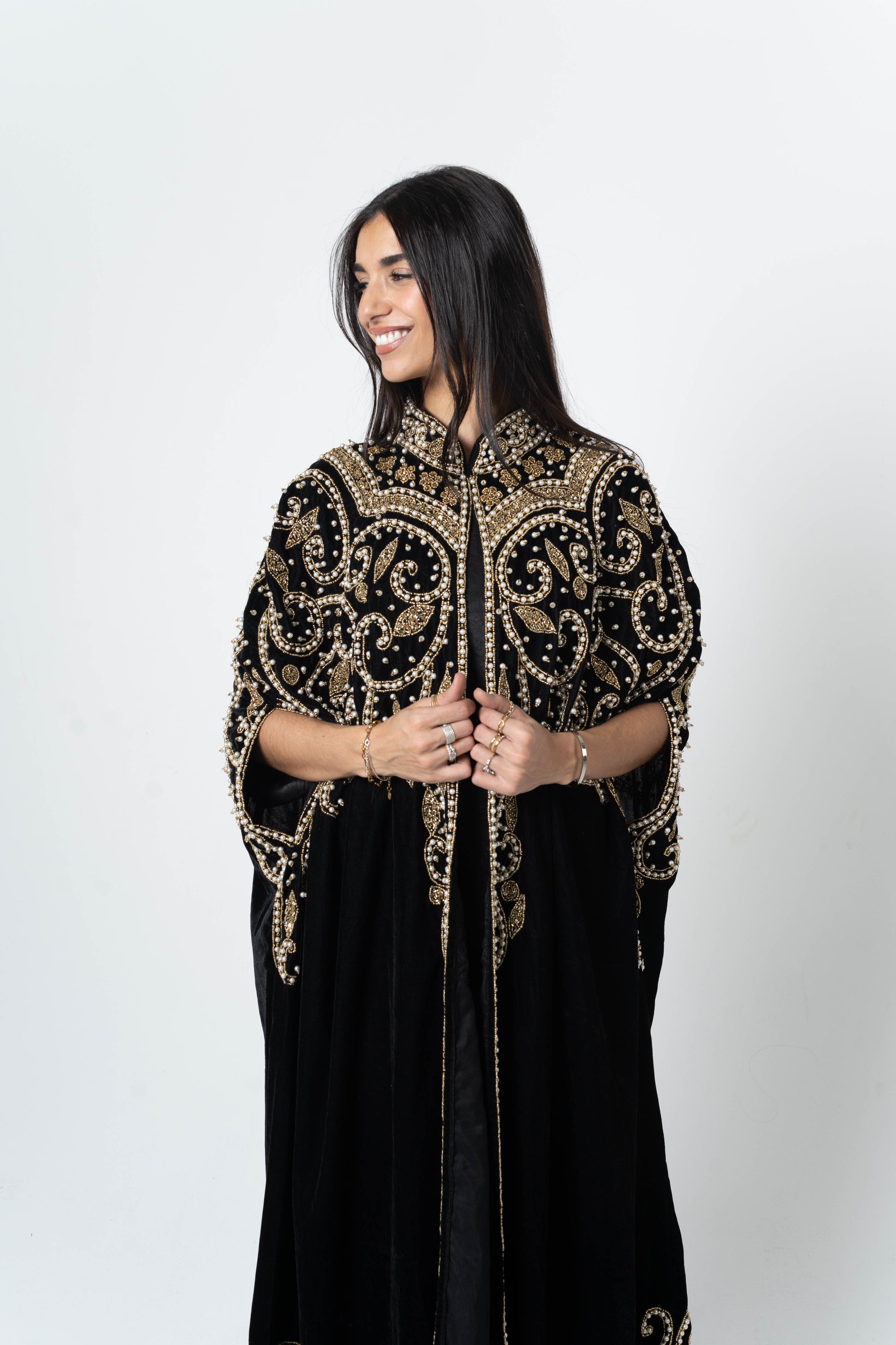 Couleur : Noir profond avec broderies dorées