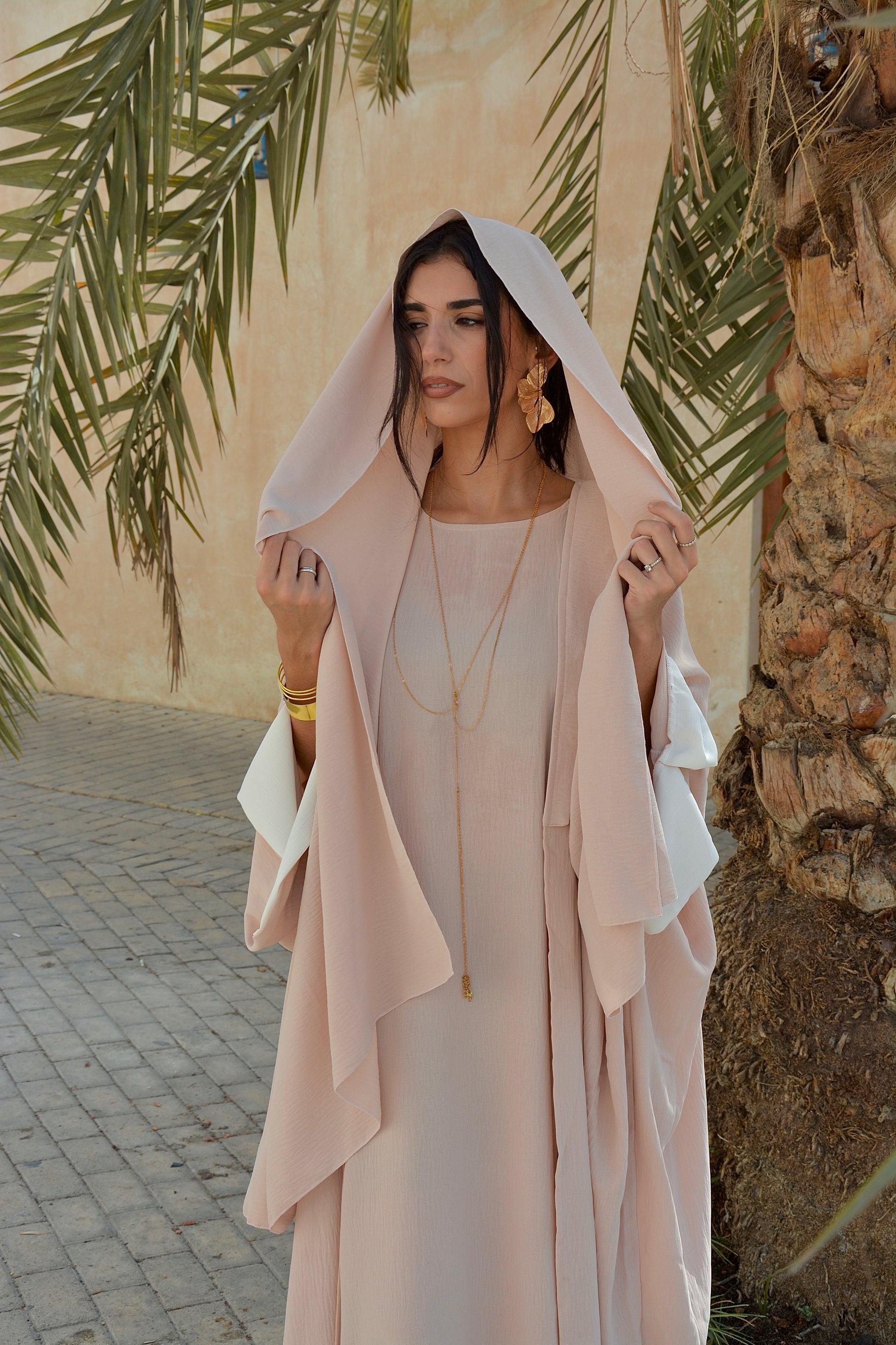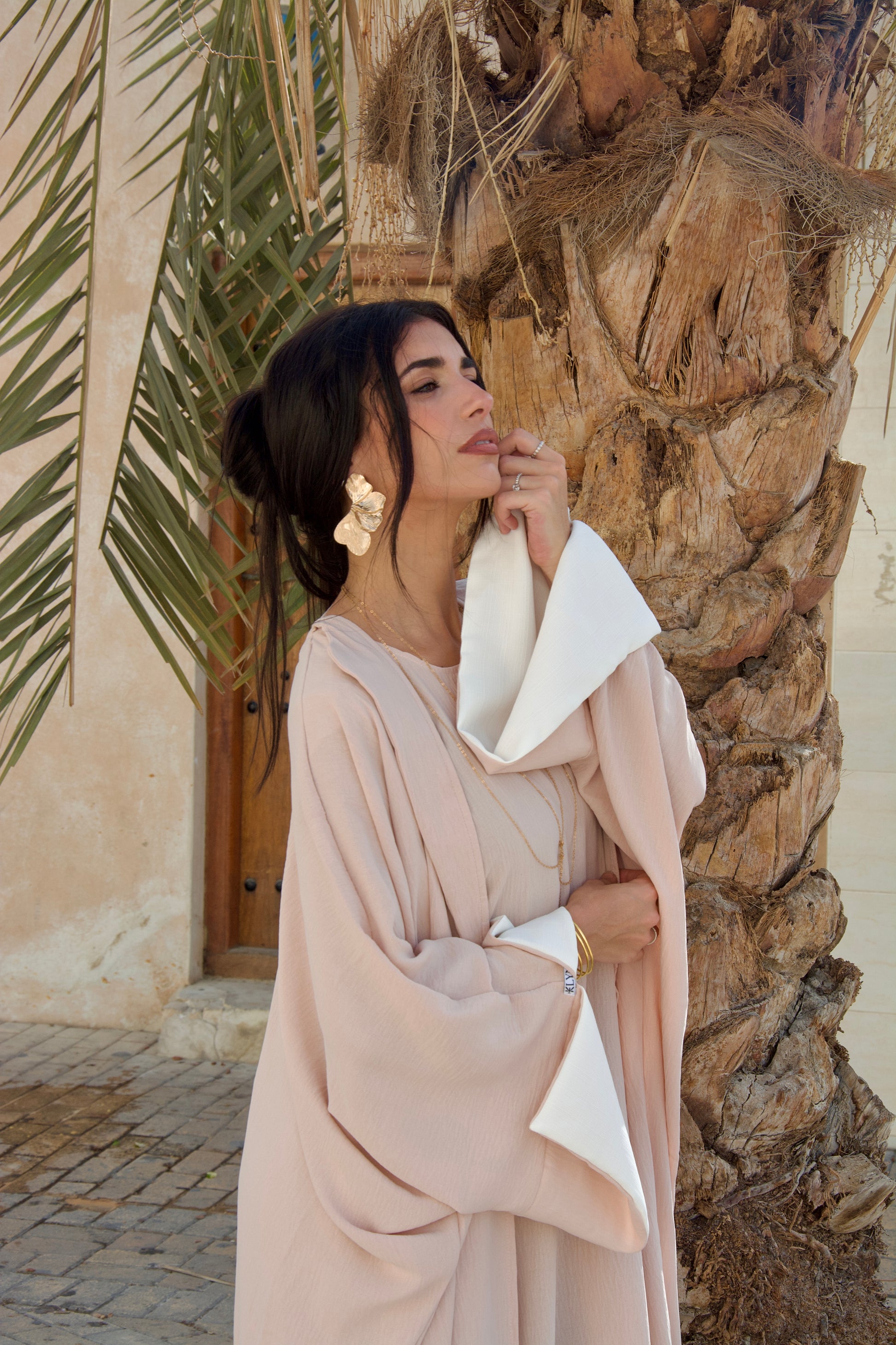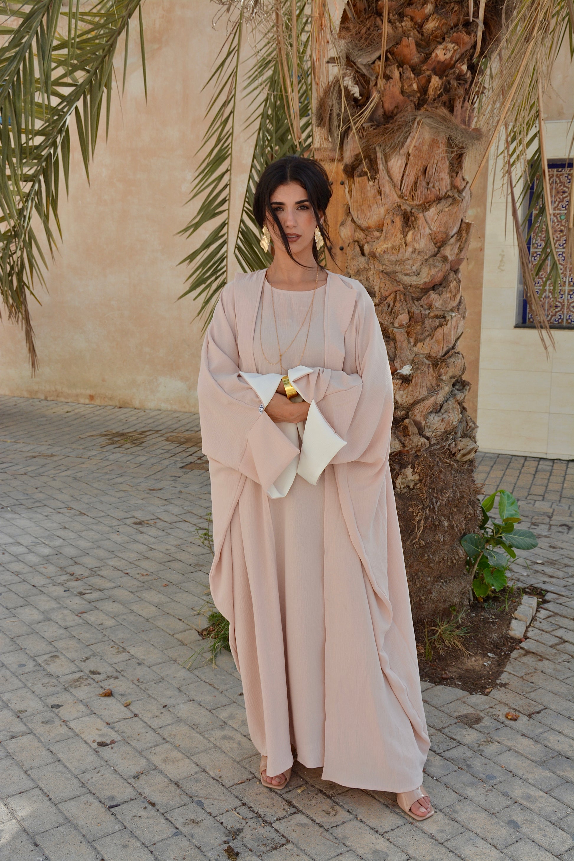Sur-abaya ouverte ample : une coupe fluide qui met en valeur la silhouette sans la marquer.