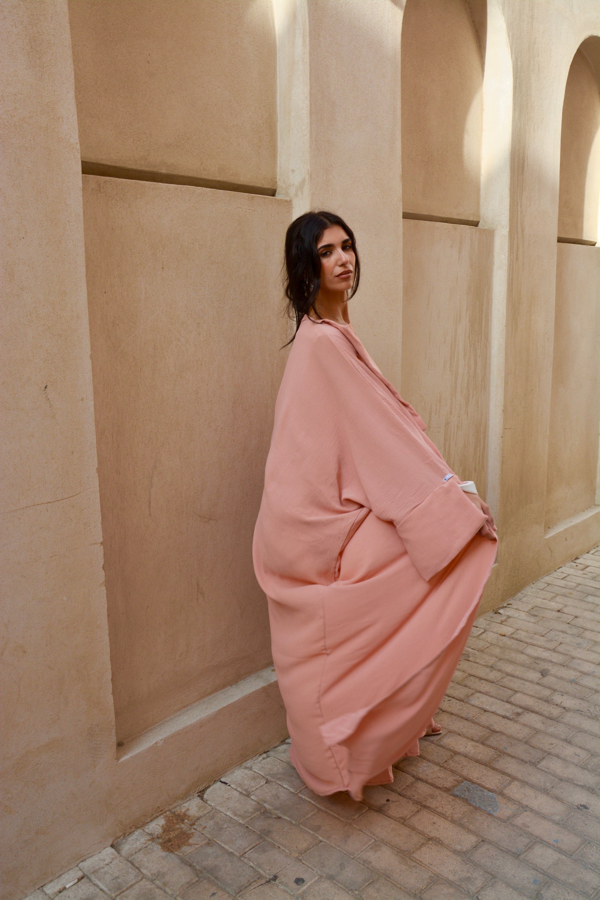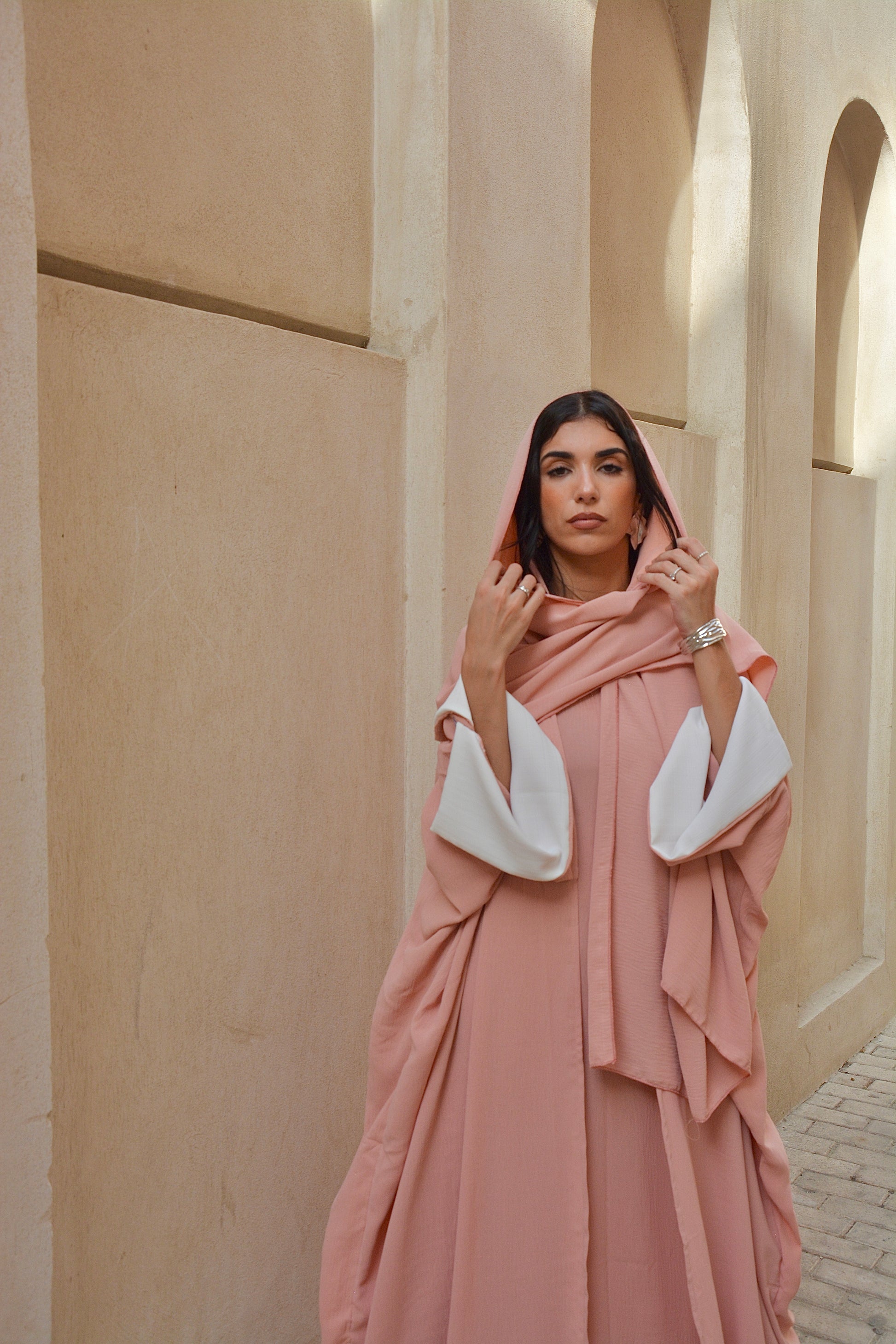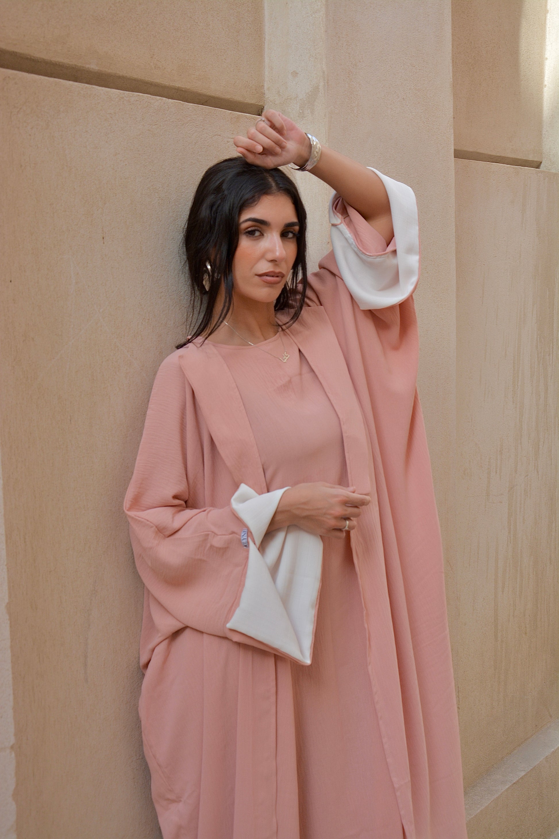 Sur-abaya ouverte ample : une coupe fluide qui met en valeur la silhouette sans la marquer.